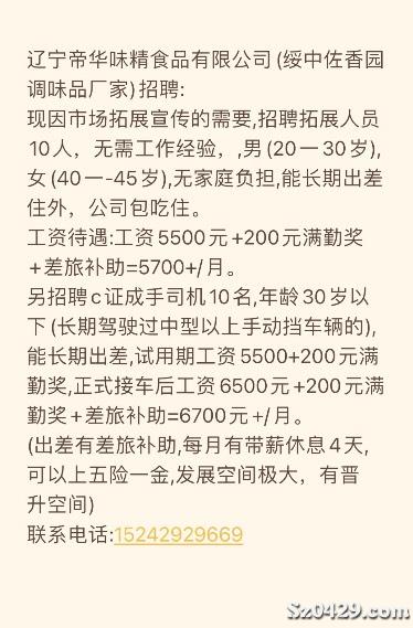 遼寧帝華味精食品有限公司(綏中佐香園調味品廠家)招聘: