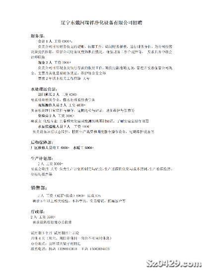 遼寧東戴河瑞祥凈化設備有限公司招聘